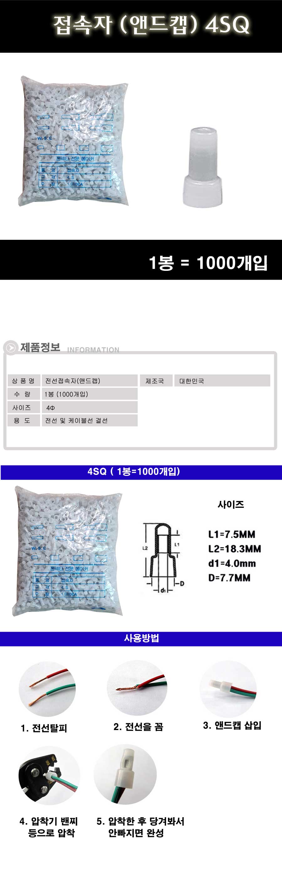 Àü¼±Á¢¼ÓÀÚ ¾Øµåĸ 4.0SQ 1ºÀ 1000°³ÀÔ ÄÉÀ̺íÁ¢¼ÓÀÚ 4SQ